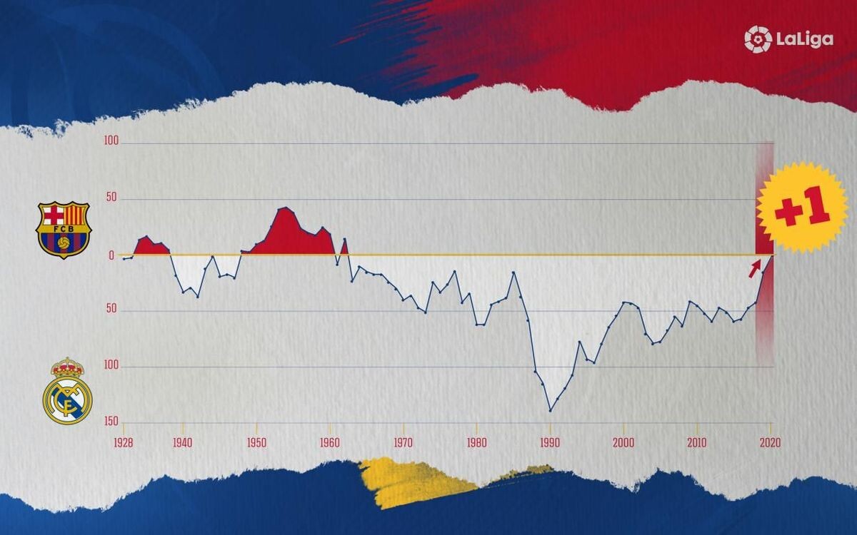 ФК Барселона превосходит мадридский Реал в историческом зачете испанской Примеры по количеству забитых мячей Мартин Лютер Кинг еще не произнес свою знаменитую речь "у меня есть мечта", Майкл Джордан не родился, а фильм Вестсайдская история получил оскар. Это было 16 декабря 1962 года, когда ФК Барселона был самой забивающей командой в истории Ла Лиги с 1932 голами. На тот момент у Реала их было на два меньше. Через неделю сливочные обыграли Барсу со счетом 5-2 во главе с Ладислао Кубалой и после этой игры Реал возглавил список команд Испании с наибольшим количеством забитых голов, и оставался на вершине более 57 лет. До 22 февраля 2020 года. 5 голов, забитых футболистами Кике Сетьена в матче против Эйбара, позволили Барсе превзойти Реал шесть десятилетий спустя. Сейчас Барса возглавляет список команд Испании по количеству забитых мячей: 6151 против 6150 у мадридцев. Самая большая разница, в 1990 году Начиная с первого розыгрыша Ла Лиги в 1929 году, Барса и Реал конкурировали за это лид