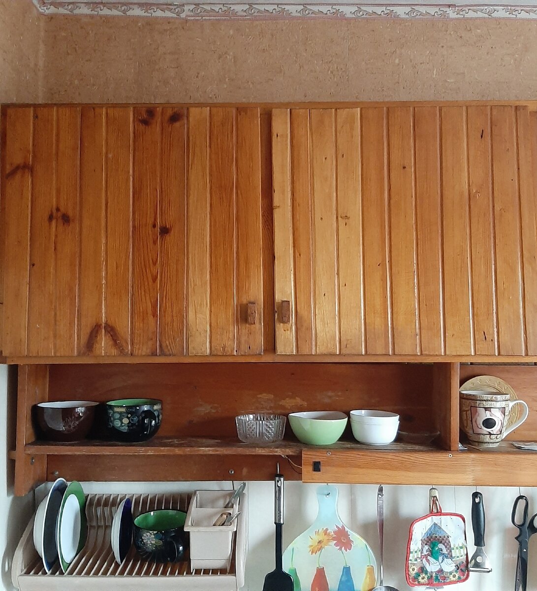После школы дед хотел поступать в художественное училище, носил свои акварели знакомому художнику, тот хвалил, но что-то не срослось. Дед иногда ходит на этюды и дома у него неплохие чужие картины. Прибавим самодельную мебель и получим очень необычный интерьер, совсем не типовой, не такой как у всех.