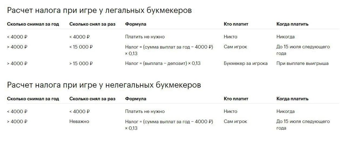 Об этом мы еще поговорим в подкасте, возможно даже запишем отдельный выпуск. А пока спешу поделиться табличкой с канала Astala News Как вы видим платить нужно только с чистого выигрыша и только если он превышает 4000 рублей в год. Так что если вы пока не выигрываете, то можете не беспокоиться. Если же выигрываете больше, то декларацию можете подать сами. На данный момент достоверно известно, что Париматч отправляет в налоговую информацию о выводах своих игроков. По поводу других букмекеров точной информации нет.