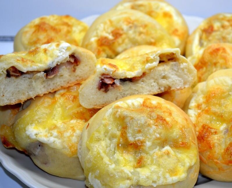 Для теста: 500 г муки 2 яйца 150 мл растительного масла 1/2 кубика свежих дрожжей 1 чайная ложка сахара 250 мл теплого молока 1 щепотка соли Для начинки: 3 луковицы 200 г нарезанного кубиками сала или бекона Для покрытия: 200 г сливок или сметаны 150 г тертого сыра 1. Добавьте в молоко сахар и дрожжи, оставьте до образования опары. А затем добавьте другие ингредиенты и замесите гладкое тесто. Накройте полотенцем и оставьте подниматься в теплом месте. 2. Подготовьте начинку. Лук нарежьте небольшими кусочками и обжарьте вместе с кубиками сала или бекона до золотистого цвета. Дайте остыть. 3. Разделите поднявшееся тесто на 18 порций. Заполните каждую часть смесью лука и сала и сформируйте ее в маленький шар. Теперь положите все шарики на застеленный пекарской бумагой противень и сделайте углубление в середине каждого шарика. 4. Наполните углубление сливками или сметаной и посыпьте тертым сыром. Выпекайте до золотисто-коричневого цвета при 180 °С. Приятного аппетита! #выпечка_всерецепти