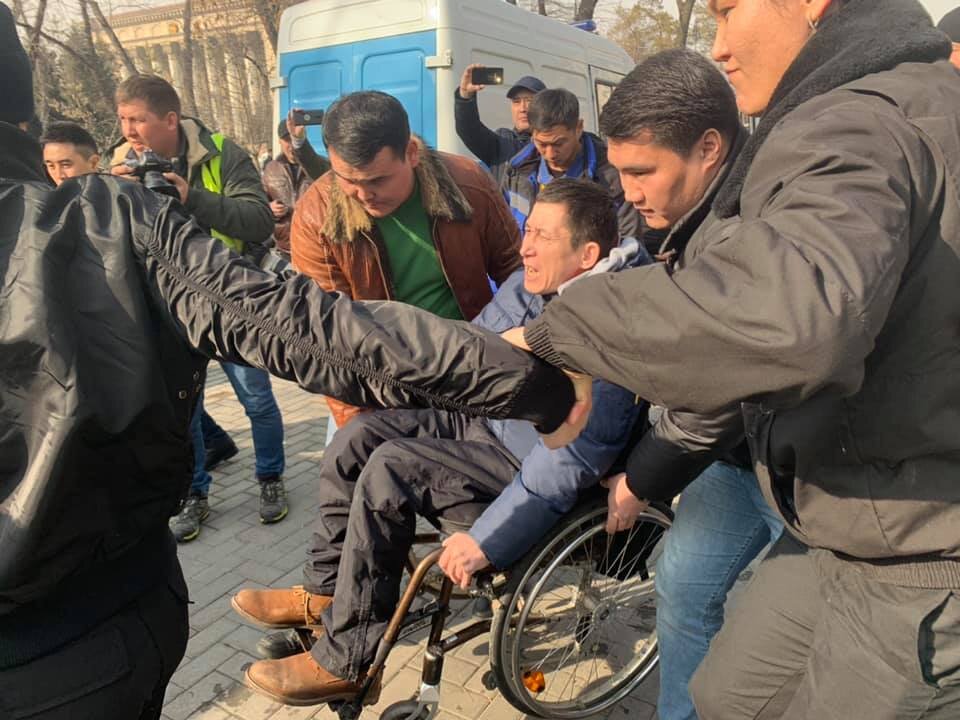 В Алматы на месте предполагаемого проведения митинга запрещенного оппозиционного движения «Демократический выбор Казахстан» полицейские традиционно хватали как специально, так и случайно оказавшихся там граждан. При этом были и некоторые новые моменты. «Уважаемые граждане! Сообщаем, что это место является зоной несанкционированного митинга…» - вещал в мегафон прокурорский работник, в то время как СОБР хладнокровно выполнял ставшую привычной работу – хватал возможных сторонников запрещенного в Казахстане оппозиционного движения «Демократический выбор Казахстана» и случайных прогуливающихся по алматискому бульвару Панфилова в районе площади Астана. Массовые задержания алматинцев и гостей города начались практически по расписанию – в 14.00 – на время начала анонсированного ДВК митинга под лозунгом «За работу, доходы, достойную жизнь». Цепи полиции и группы СОБР, ставшие обыденным для Алматы явлением во время намечаемых ДВК акций, пугали свои видом гостей города, считавшими, что в Алматы,