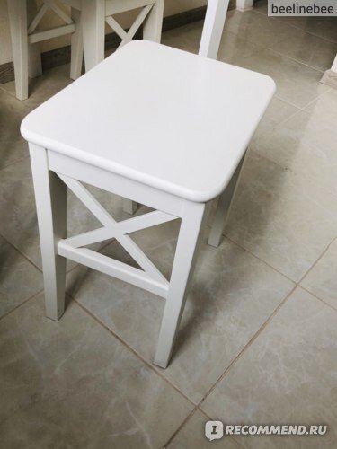 Когда я стала читать отзывы на понравившуюся мебель в икеа, я очень удивилась тому что на большинство моделей очень мало отзывов, так как этот магазин достаточно популярный и имеет крайне много заказов. К этому числу и относится эта табуреточка. Цена 2299р Я покупала три табуретки для кухни, но использовать можно не только на кухне, но и к примеру как прикроватный столик и т.п. Смотрится такая табуреточка вполне изящно и красиво и добавляет интерьру легкости. Я постаралась сделать фото что бы было максимально понятно как смотрится в интерьере, потому что когда я читала отзывы, я нашла лишь крупные фотографии в которых не понятно как будет смотриться стул на моей маленькой кухне. Кстати цвет я так же постаралась предать максимально близко к реальному. Считается что стул белый, но на самом деле он слегка молочный и отличается от другой белой мебели икеа. Вот на этом фото можно увидеть разницу: От икеи: Массив дерева – износостойкий натуральный материал. Для обеспечения устойчивости чер