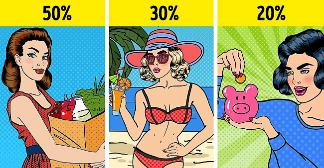 Это правило можно использовать для управления бюджетом. Оно должно разделить ваши доходы на 3 категории: