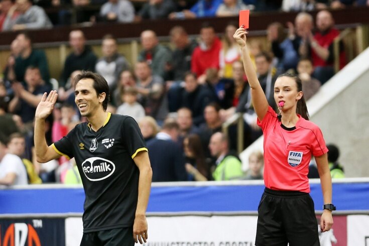 На Бенаюне фолят ,этим он остаётся недоволен, высказывая свои претензии главному судье Александре Пономаревой. Возможно это и прозвучало грубо ,но это футбол! За это мы и любим его! И тут его удаляют. Очень странное решение.
