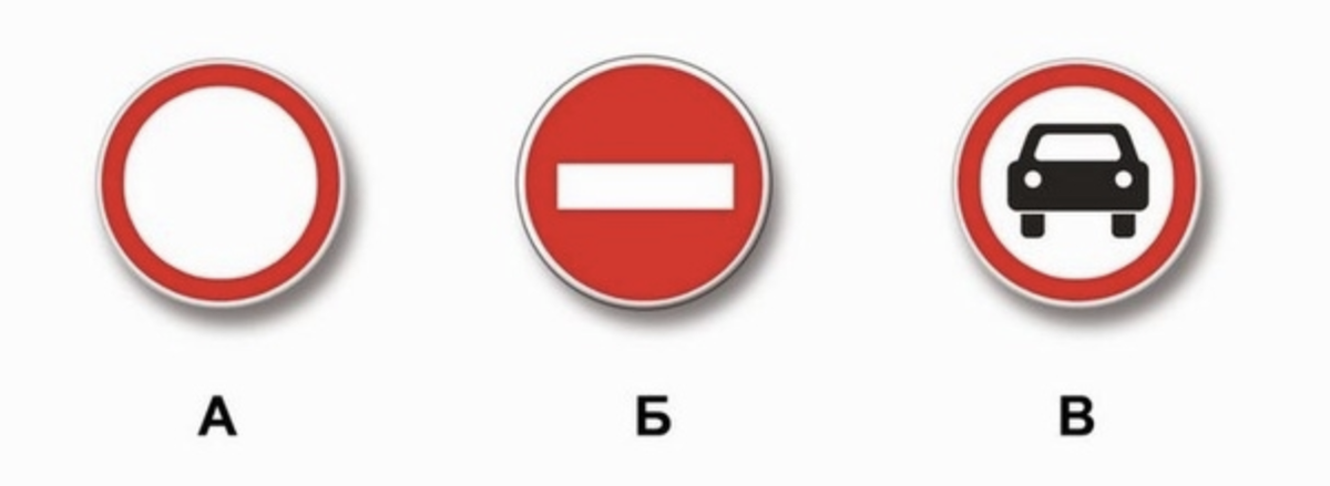 Комментарии к ответу. Действие знаков А (3.2 «Движение запрещено») и В (3.3 «Движение механических транспортных средств запрещено») не распространяется на ТС, принадлежащие лицам, проживающим или работающим в обозначенной зоне. Знак Б (3.1 «Въезд запрещен») запрещает движение в данном направлении всех ТС.