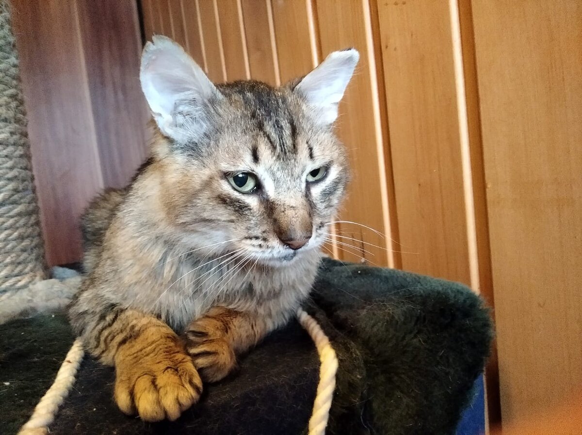 Кот довольно большой, чтоб было примерно понятно, размерами как два кота. А вот весил он на тот момент 2кг...как пятимесячный котенок. Естественно Людмила забрала его домой, хоть у нее дома уже одиннадцать котов, есть и спинальница. Свозили его в клинику, пролечили, откормили. На все эти процедуры ушел месяц. Кот из разряда, судьба его помотала и потрепала хорошо, даже врачи по началу говорили что он уже старичок, но после проведенного лечения выяснилось, что кот просто очень запущенный, но совсем не старый.