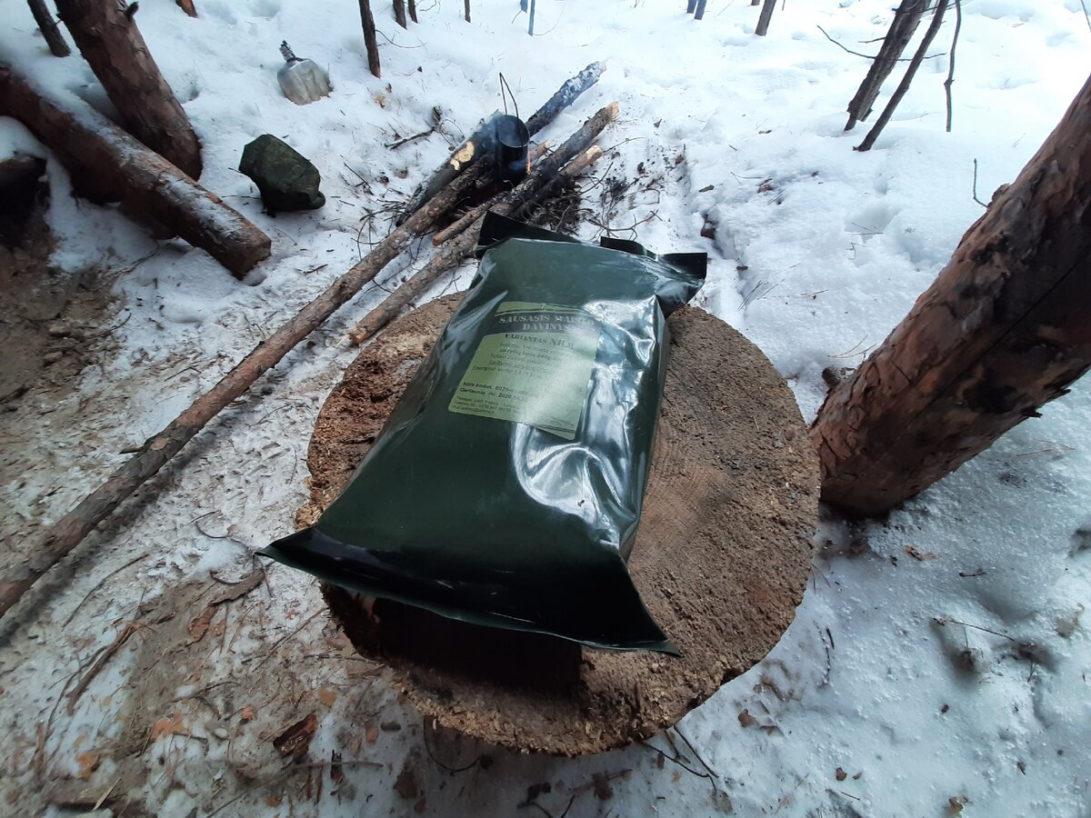 Здравия, други! Только что приехал с лесу. Точнее можно сказать сгонял пожр... потрапезничать на свежем воздухе яствами заморскими) Давеча пришла посылка мне ил Литвы от нашего подписчика. В ней вместе с разными нужными приблудами бушкрафтерскими был положен сухпай литовский. Пользуясь выходным выпавшим на понедельник и погодой подходящей сгонял я в леса дабы тот сухпай опробовать. Короче обжор сухпая литовского с дегустацией и фоточками ниже следует. SAUSASIS MAISTO DAVINYS вариант 8. 1459 ккал, 670 грамм. Рассчитан на одного человека, на один прием пищи. Внутри второе блюдо.. Первого нету. Вот бы туда аще тарелочку борща... Однако набор продуктов по порядку и внимательнее. Конечно основное блюдо... Оно основное)) Пакетик орехов. Фундук. Сушеный. Орехи отданы были детям) Даже не попробовал. Бо жувать нечем все равно) Галеты. 4 штуки. Толстые, твердые как камень) С одной стороны это преимущество. В наших половина галет к моменту употребления превращаются в крошки. С другой стороны