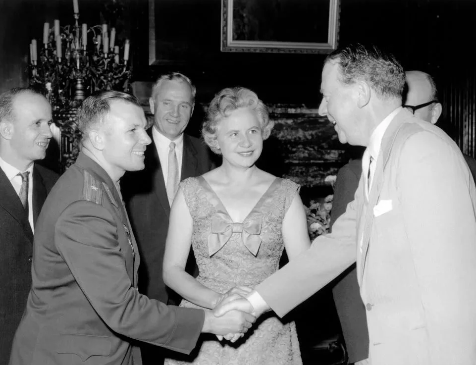 Юрий Гагарин, после совершения значимого полета в космос, стал желанным гостем не только в странах Советского Союза, но и за рубежом. Одной из ярких поездок в его жизни стал визит в Англию в 1961 году. Там ему подарили золотую медаль от Фонда развития космоса. Также космонавт удостоился чести встретиться с премьер-министром страны Гарольдом Макмилланом и королевой Елизаветой II. Об этой встрече хотелось бы поговорить поподробней. Дело в том, что встреча Гагарина с королевой была не запланированной, поэтому наш советский парень не был ознакомлен с этикетом и не подготовился. Первый конфуз случился, когда решили сфотографировать Гагарина вместе с королевой. В то время было запрещено иметь совместную фотографию с монаршими особами, если вы относитесь к простому народу. Но королева обошла этот негласный запрет, сказав, что Гагарин – не земной человек, а небожитель, поэтому никаких нарушений нет. Юрий Гагарин стал единственным человеком, которому Елизавета II предложила сфотографироваться в