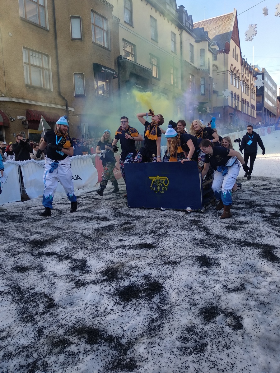 Все начинается с веселых катаний с горы на центральной улице Турку на самодельных санках. Но всё не просто так, это соревнования на креативность и находчивость. Каждой группе три судьи выставляют оценку от 1 до 5, победителями становятся те, кто набрал больше всего баллов.