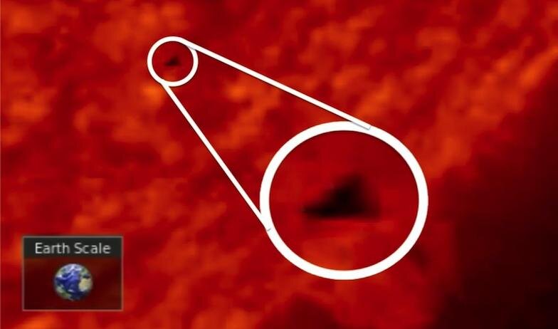 На протяжении нескольких дней уфолог Скотт Уоринг наблюдает аномальное явление на поверхности нашего светила. Как сообщает свободный исследователь загадочный треугольник застыл непосредственно у поверхности Солнца. Поражают как невероятно точные и строгие геометрические формы, так и постоянство этих форм в течение времени. На искусственное происхождение этого пятна указывает и то, что любое иное пятно на солнце не может на протяжении долго периода сохранять свою форму и размер. В данном же случае явление по-настоящему странное и непохоже на известные науке, наблюдаемые ранее солнечные пятна. Стоит упомянуть, что размер аномалии сравним с размерами Луны. После того, как уфолог опубликовал новость, люди стали делать самые разные догадки, строить теории, среди которых, по классической схеме, упоминаются и военные базы инопланетян, и материалистически-скептические объяснения феномена. Однако также определенные вопросы вызывает та тишина, которую хранит НАСА и все прочие астрономы всего све