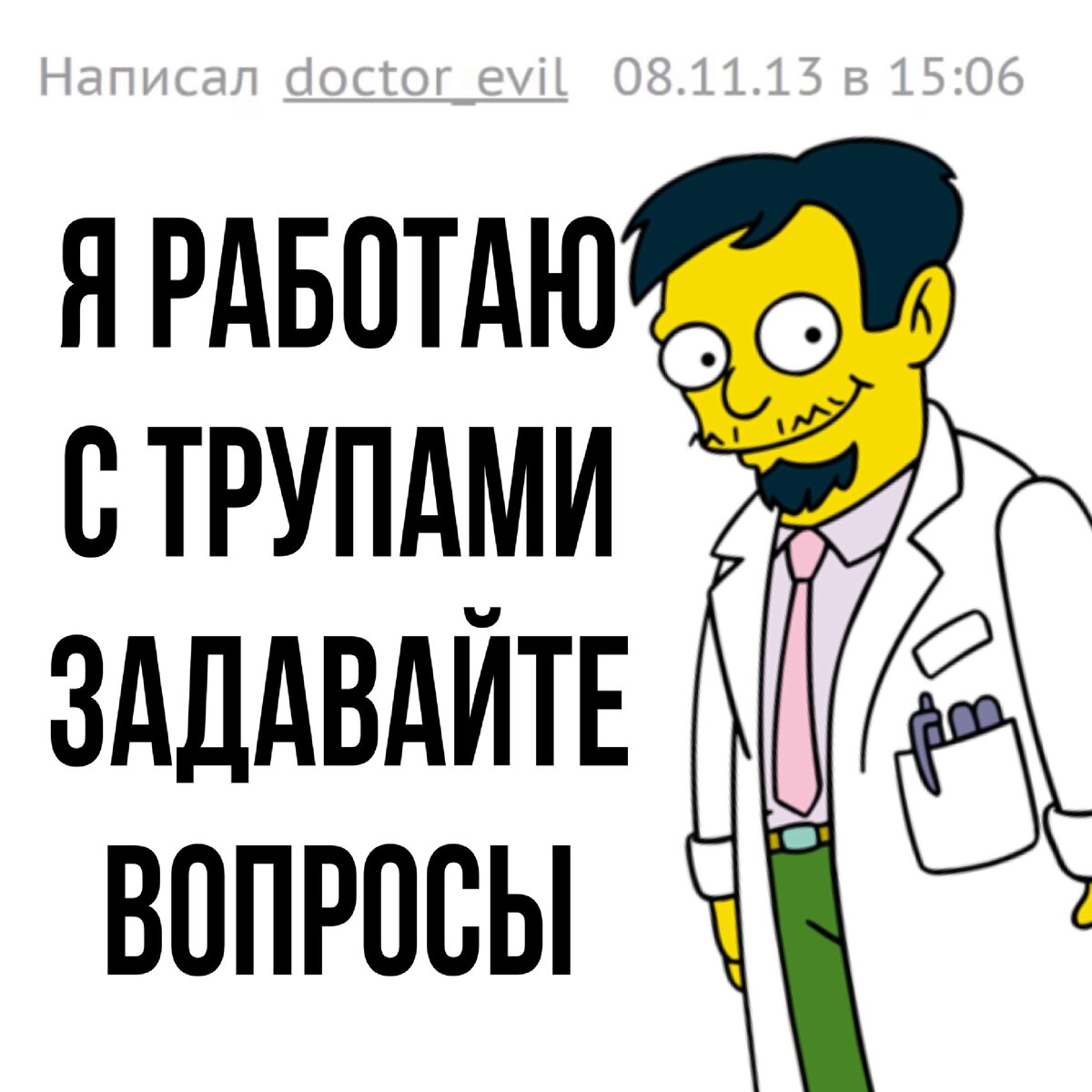 В данной тематике человеку задаются вопросы, а он на них отвечает! Поехали! Я врач-патологоанатом из провинции. Аутопсии и гистология, беседы с родственниками, стаж 7 лет. Отвечу на любые вопросы Правда ли, что разницы в легких у городского курящего и не курящего жителя практически нет, а вот у деревенского они чище? Получается воздержание от курения не дает никаких плюсов? Расскажите что вы делаете с "отходами производства".Т.к. это биоматериал потенциальный источник болезней. Автоклавируете и выкидываете или сжигаете, или что? За работой бутерброд можете кушать? Извините, а первый тогда какой? Вы с трупами разговариваете. Например: "Эхх, ну тебя, дружище, и угораздило, зачем же было столько бухать!" Ну или просто пофилософствовать. Какова ситуация с печенью в провинции? Спивается народ? Приходилось ли вам для спасения задниц коллег корректировать свои выводы относительно причины смерти? Знакомы ли вам бездымные сигареты? И как они влияют на здоровье? Что ныне с туберкулезом в России?