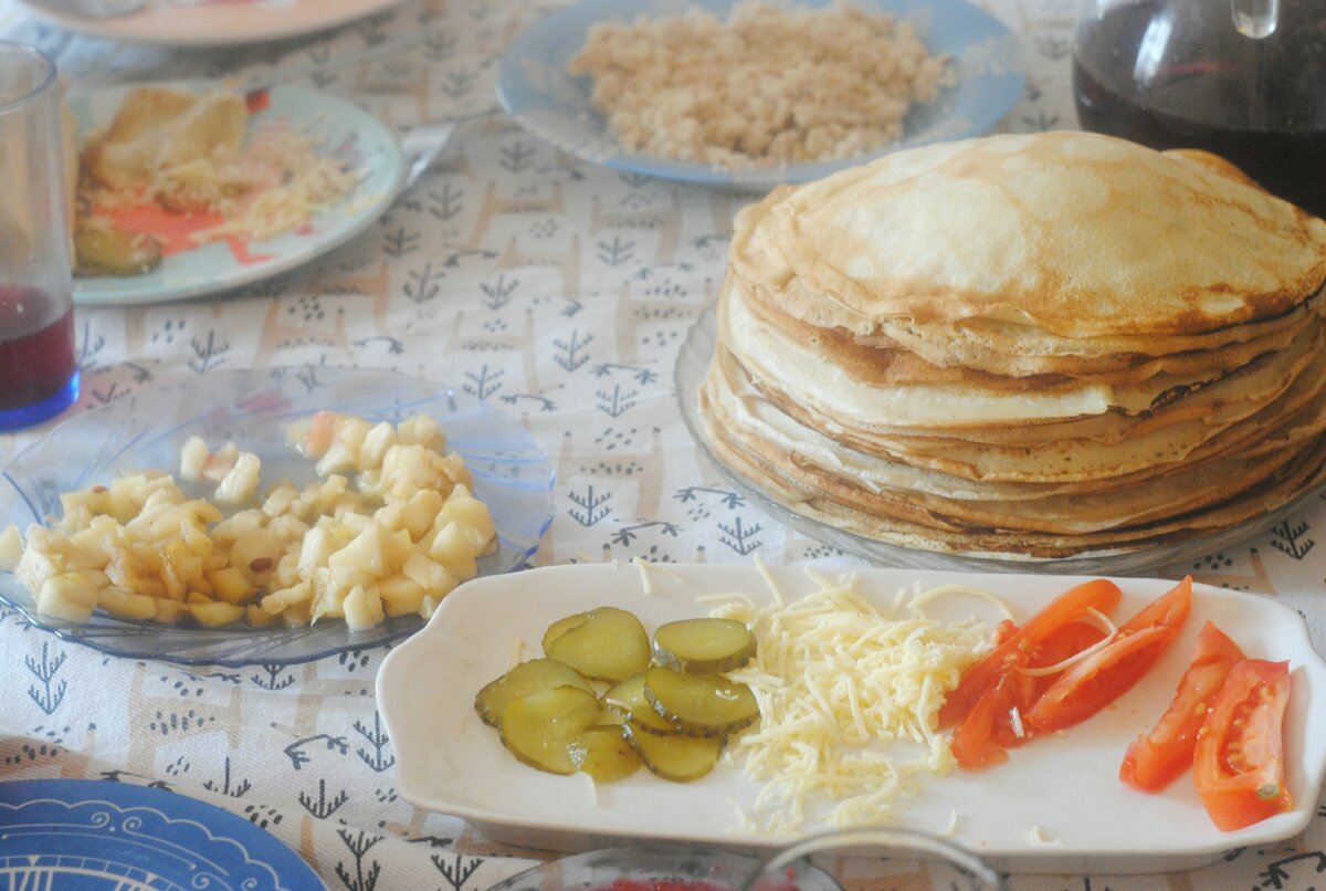 О своем любимом рецепте блинов я уже рассказывала здесь. Есть еще чудесный рецепт блинов на воде.
