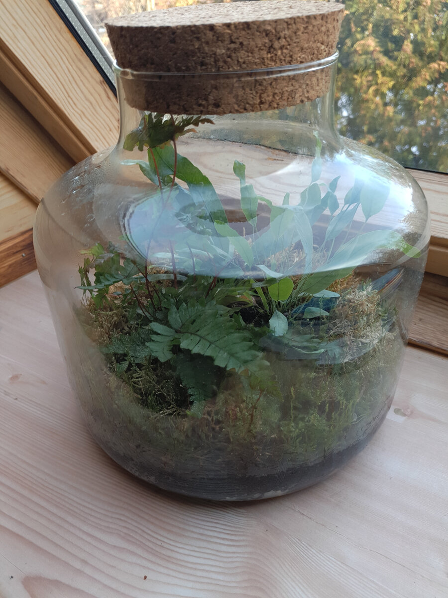 • большой стеклянный посадочный контейнер в том стиле, который вам нравится, с достаточно широким отверстием, чтобы посадить растения, и крышкой или уплотнителем (обычно пробкой).