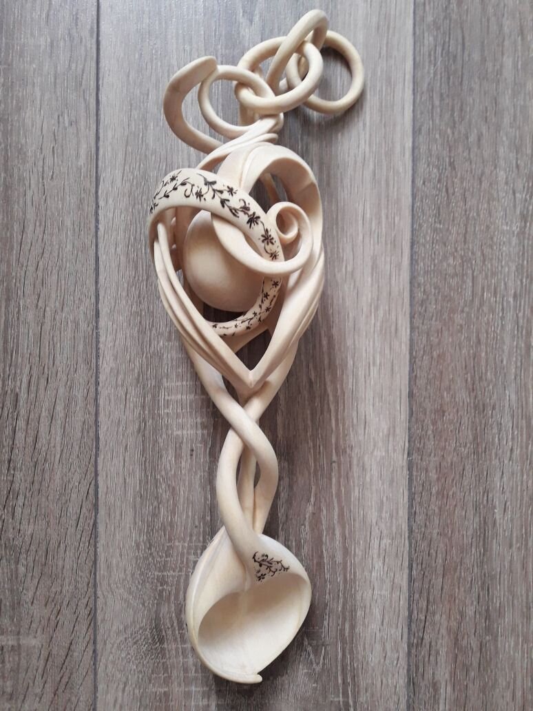 Доброго дня! Меня зовут Екатерина Дегтярева. Я являюсь выпускницей Русской Токарной Школы, о чем упоминал Андрей Громов в одной из своих статей и даже показывал сегментную вазу, над которой я трудилась чуть больше 3 месяцев. Сегодня я хочу немного рассказать вам о других моих работах В разное время я осваивала разные виды рукоделия. Что только не было перепробовано, но всегда возвращаюсь к работе с деревом – мне кажется, что это идеальный материал для творчества. Занимаюсь я резьбой по дереву с 2009 года. Училась сама по публикациям в интернете, форумам, журналам. И первое, вырезанное мной изделие, это ложка. Но не простая, а ложка любви - love spoon или кельтская ложка. Фотографию этой необычной ложки я увидела в журнале «Татьянка», там же была и статья про историю и символику данных ложек. И, конечно, кельтские ложки не предназначены для еды или приготовления пищи, поскольку вешаются на стену, как символ любви и семейного счастья. Данная ложка выполнена из цельного куска дерева –