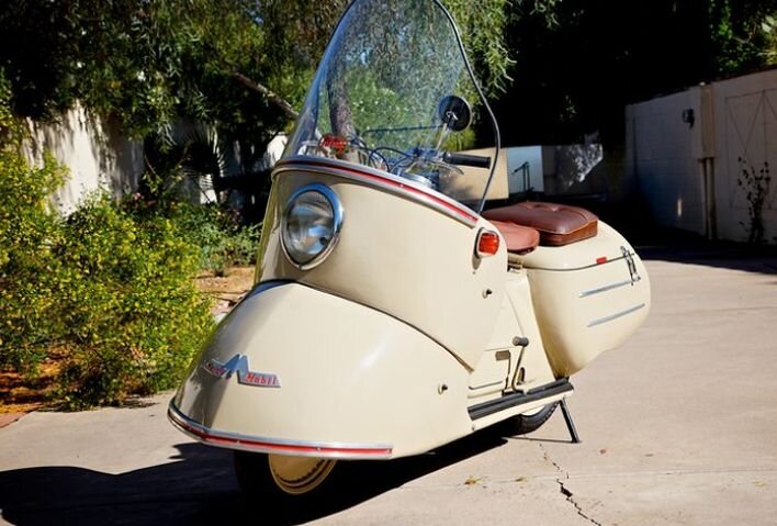 Этот забавного вида мотоцикл появился в начале 1950-х. Производством занималась небольшая немецкая компания Maicowerk, специализировавшаяся на мототехнике. Они хотели сделать мотоцикл, приближенный к автомобилю, это даже в названии отражено – Maicomobil.