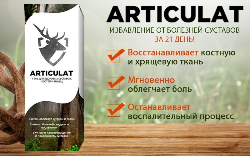 Articulat – что это? Полностью натуральный гель способствует комплексному восстановлению работы суставов вне зависимости от причины, которой было вызвано заболевание. Благодаря специальной технологии обработки производителю удалось сохранить полезные свойства растительных компонентов, которые входят в состав препарата. Регулярное использование этого средства позволяет добиться результата без вреда для здоровья. Уникальный комплекс не имеет аналогов. В отличие от химических лекарств он не вызывает побочных эффектов и синдрома привыкания. После прекращения использования болезнь не возвращается. Подробнее