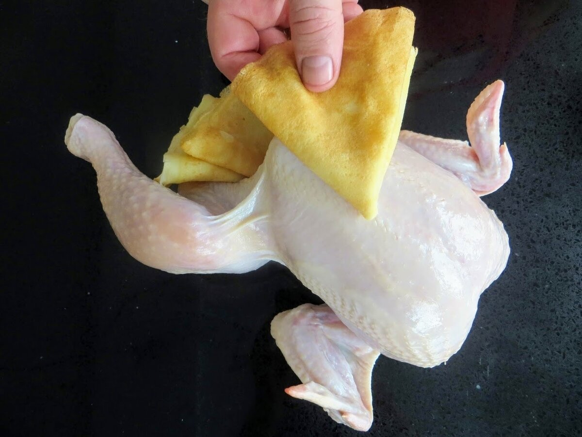 Невероятная вкуснятина из куриной грудки. Когда готовили первый раз, даже не ожидал, что так вкусно и красиво получится! Закуска просто на загляденье, получается курица фаршированная блинами! Пробовали такое? Смотрите и повторяйте на здоровье! По желанию, для приготовления, можно взять любые части курицы (практически любые). Окорочка или один окорочок и половину грудки. Я сегодня просто возьму филе куриной грудки. Рецепт: куриное филе 2 шт, грибы шампиньоны 200 гр, лук 1 шт, молоко 4 ст.лож, яйцо 1 шт, мука 4 ст.лож, соль, черный перец по вкусу, растительное масло для жарки. Каждую половину грудки надрезаем сбоку, так что бы получилась книжка. Используем пищевую пленку и отбиваем куски мяса до одинаковой толщины. Присолили, поперчили и пусть подготовленное мясо полежит. А мы пока обжариваем лук (до золотистости) и грибы порезанные кубиком. В самом конце посолите на свой вкус и пусть остывает. Одно яйцо (со щепоткой соли), немного молока и муку соединяем вместе и хорошо вымешиваем (б