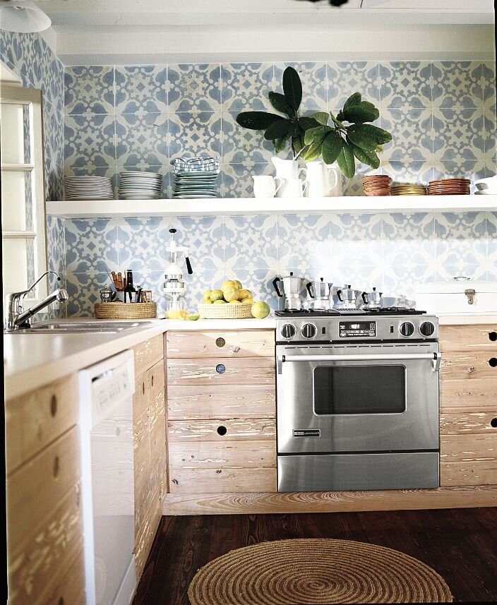 Мозаика на кухонном фартуке — самый простой способ добавить кухне цвета и характера. Кухни всё чаще оформляют в нейтральных оттенках. Это решение обусловлено не только тенденциями в дизайне, но и желанием создать спокойное, светлое пространство — фон для семейных посиделок и готовки. Фартук с мозаикой в этом случае становится чуть ли не единственным притягивающим взгляд ярким пятном. Мозаика — это некий рисунок или орнамент, образованный скреплёнными между собой сегментами: камешками, стёклами, эмалью или плиткой. Однако совсем не обязательно погружаться в античное творчество, чтобы добиться привлекательного результата. Мозаика на кухонном фартуке может представлять собой располагающиеся рядом плитки с самым разным рисунком. Пусть даже этот рисунок или оранмент не закончен. Создавая собственный мозаичный кухонный фартук, попробуйте подобрать отдельные сегменты в близкой цветовой гамме. Как здесь, например. Вот такие настоящие мозаичные панно для кухонного фартука создать гораздо