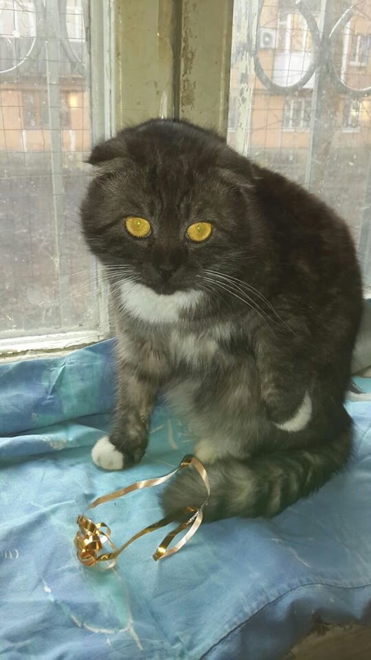 Прекрасный черно-белый котик по кличке Мультик породы скоттиш-фолд разделил нелегкую судьбу со своим товарищем: Длинношерстный вислоухий котик Шерман - нежный пушистый антидепрессант Он - вислоухий красавец очень красивого дымчатого окраса с белым подпушком, с большими янтарными глазами.