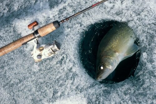 В данном случае рыболову необходимо обзавестись жёстким удилищем длиной около 60 сантиметров, которое оснащается инерционной катушкой и кивком. Выбор лески зависит от личных предпочтений рыболова, таким образом подойдёт монолеска диаметром от 0.25 до 0.3 миллиметра или плетёнка диаметром 0.12 миллиметра. Ловить судака на тюльку можно с мормышкой или отводным поводком. Выбрав первый вариант рыболову понадобятся крупные мормышки диаметром около 10-20 миллиметров или аналогичные им джиг-головки. Второй вариант потребует некоторого времени на изготовление. Для отводного поводка берут грузило весом от 12 до 18 грамм, а более точная масса зависит от глубины и силы течения в месте ловли. На конце основной лески привязывается грузило, а выше от него, на расстоянии приблизительно 20-30 сантиметров прикрепляют поводок, оснащённый тройным крючком, поперёк которого насаживается тюлька. Длина поводка зависит от условий ловли и колеблется от 15 до 20 сантиметров. Кроме тройного крючка для ловли