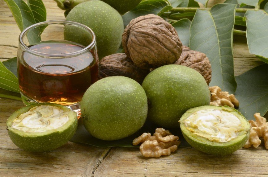 Основным ингредиентом в этом рецепте является грецкий орех. Ведь в грецком орехе содержится очень много йода. Особенно его много в зеленых грецких орехах, в тех, которые еще не доспели и не затвердели.