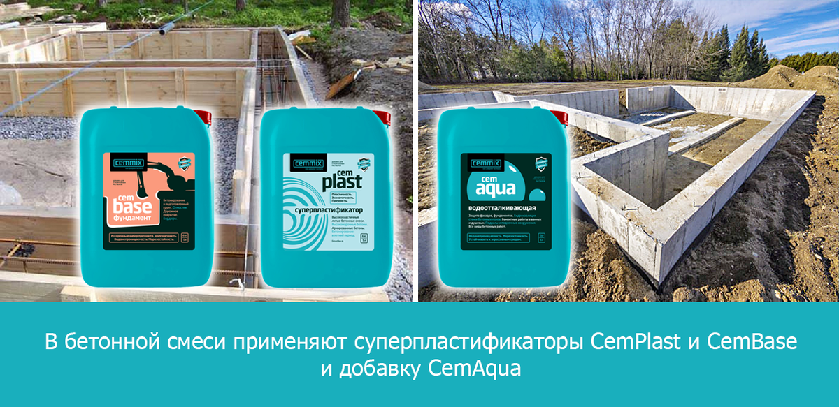 Ленточные фундаменты устраиваются двумя технологическими способами: Монолитные ленточные фундаменты Все работы (опалубочные, арматурные и бетонные) производятся непосредственно на месте строительства здания и его фундамента: Выполнение монолитных ленточных фундаментов значительно более трудоемкий процесс, но при соблюдении технологии и применении высококачественного бетона можно получить более надежный фундамент с характеристиками, которые обеспечат прочность, водонепроницаемость и морозостойкость. Также важно, что для выполнения последующих видов работ, где предъявляются высокие требования к чистоте и ровности поверхности, например, гидроизоляционных или отделочных работ, монолитные фундаменты подходят более всего. Основным материалом для фундамента является бетон. Требования к прочности бетона: Для изготовления бетонов с такими характеристиками рекомендуется применять химические добавки CEMMIX: Добавки можно смешивать и получать одновременно подвижную и водонепроницаемую смесь. Доб