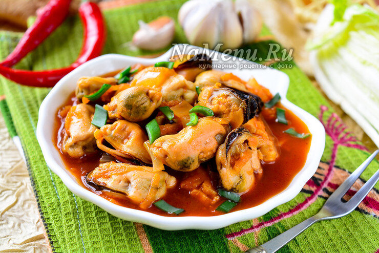 Мидии в томатном соусе с чесноком. Простой рецепт