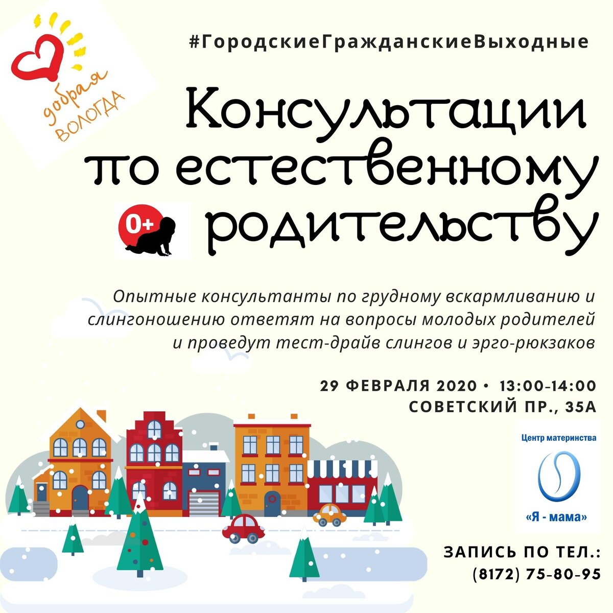 Задать свои вопросы специалистам можно 29 февраля с 13:00 до 14:00 во время проведения городского гражданского выходного "Добрая Вологда" по адресу: Советский пр., 35а, 2 этаж. Помимо консультаций для родителей на городском выходном будет представлено много других активностей от некоммерческих организаций города. Полная программа: https://vk.com/@ggv35-rogramma-gorodskih-grazhdanskih..
