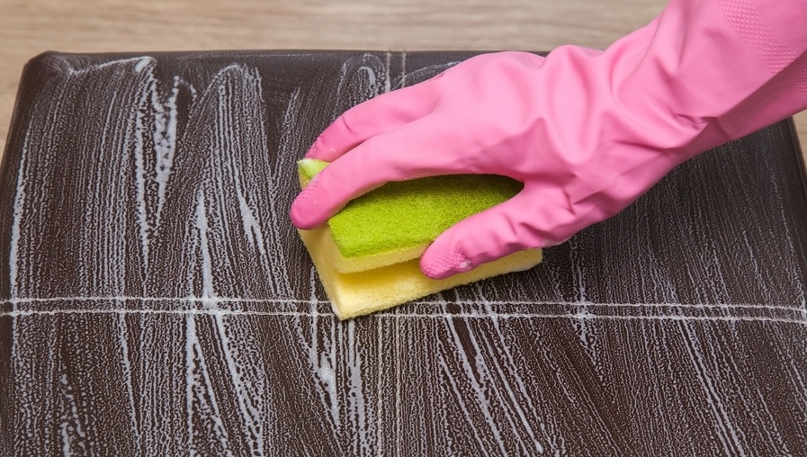 Мебель из кожзама, экокожи нуждается в аналогичном уходе. К ней не стоит применять агрессивные пятновыводители, средства, содержащие продукты нефтепереработки.