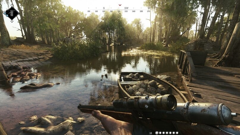 В Hunt: Showdown, даже больше, чем проницательность, речь идет о хорошем слухе. Игра без наушников - это полное недоразумение. Почему? Что ж, определение местоположения всех шумов и шумов может не только позволить нам убрать противника (или уйти из его поля зрения), но и контролировать наши действия. Помимо шума бега или стрельбы, у нас есть много чувствительных к звуку точек на карте. И это умирающие лошади, которые бродят, как только мы приближаемся к ним, и они - вороны или утки, которые начнут сумасшедшую серенаду на наших глазах, и это коварные ветки или битое стекло, наступив на которых может закончиться для нас смертью. Все это работает на чувства, и в конце концов я посчитал это как плюс, но иногда я начинал задаваться вопросом, не достигает ли число этих звуковых ловушек предела абсурда.