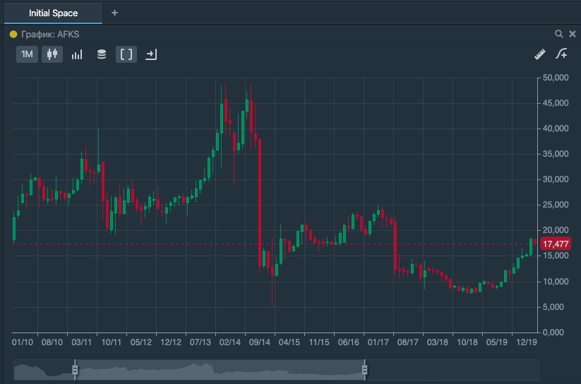 Первой компанией в нашем списке оказалась одна из самых интересных на мой взгляд, неоднозначных, недооцененных: АФК "Система" (AFKS).