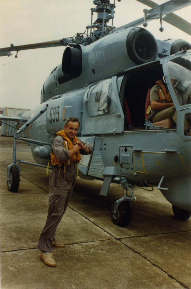 Прикатил трактор и вытащил КА 28 из ангара. Приехал на скутере индийский морской летчик, который должен был лететь в смешанном экипаже, как штурман. Переводчик полез было за спасательным жилетом, в котором летал раньше, но был остановлен летчиком Сашей. Оказалось, что Переводчика даже не включили в полетный лист, поскольку связь с берегом будет поддерживать индийский пилот. Времени, оспаривать командирское решение не было, и вертолет улетел без Переводчика, которому оставалось только проявлять выдержку. Минут через 40 со стороны океана появилась черная точка, через некоторое время, выросшая до размеров вертолета. Он летел над взлетно-посадочной полосой и мимо ангара на бреющем, метрах на пяти. В конце полосы КА 28 остановился и завис, выметая бетон взлетки мощным потоком воздуха. Пока он висел в раздумье о дальнейших действиях, все находившиеся на аэродроме люди обратили на него внимание. Выдержав классическую паузу, вертолет вновь полетел над взлетной полосой, но теперь — задом! Э