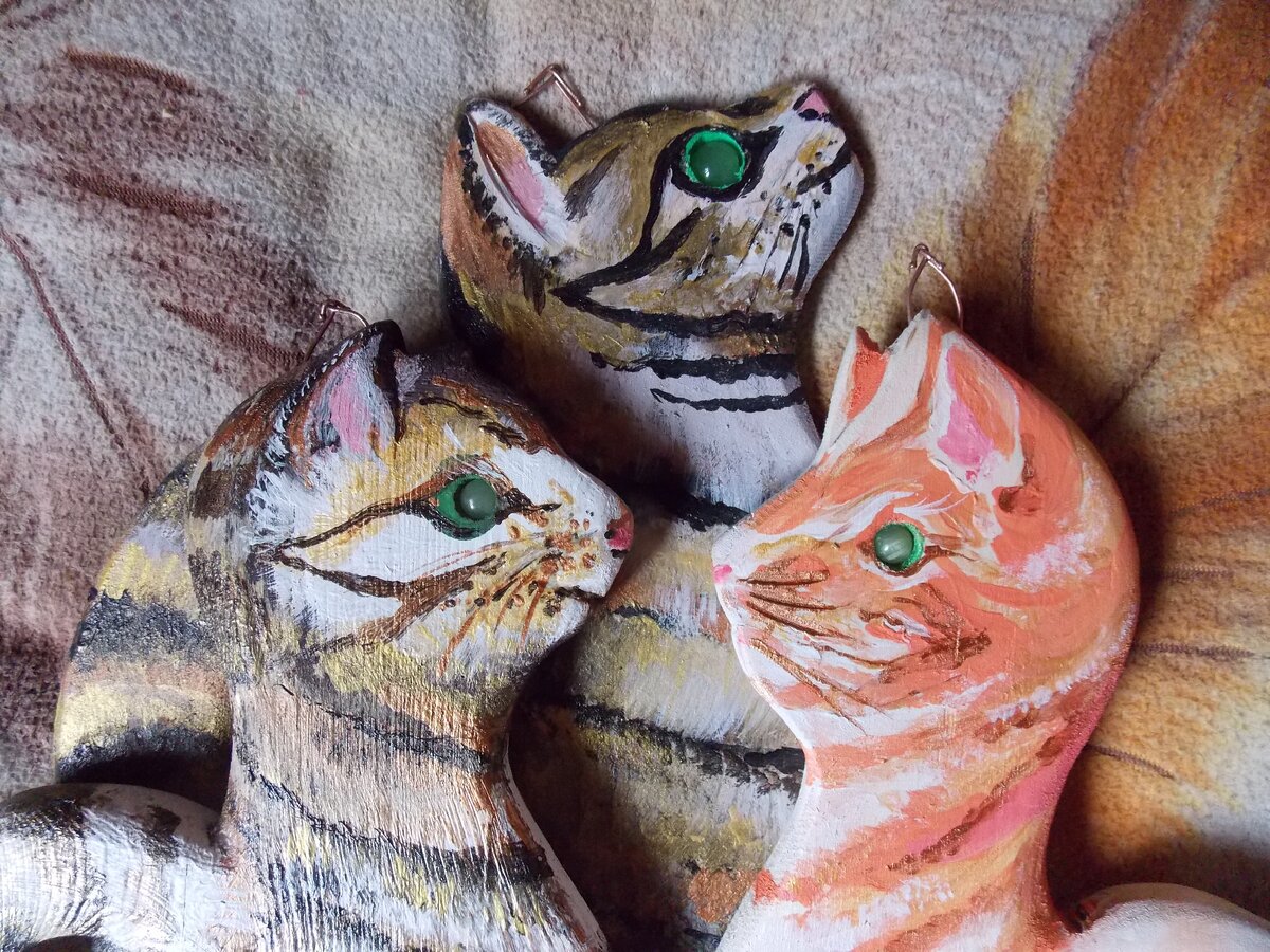 И завопил тепло и вакханально... Саша Черный. — Приближается 8 марта! Остается дней десяток. Надо подарки приготовить. Малышка Аришка нарисовала дивную картину, и сказала, что это кошка. Идея! Доска есть, лобзик, болгарка есть, акриловые краски есть. Теперь начинаю СОТВОРЕНИЕ ВЕСЕННЕГО КОТА из подручных материалов. это будет разделочная доска с хвостом. Начинаю вырезать из доски подходящую фигурку. Шлифованные коты, приятно пахнущие деревом. Кисти и акриловые краски – нам в помощь! Пригодится и золотая акриловая краска из строительного магазина. Да еще посмотреть с удовольствием на настоящих вдохновляющих котов. И с этим же настроением продолжаем. Глазки – настоящие бусинки. А ушко – подвески из двух согнутых медных гвоздиков. Красавцы. Сколько доски хватит, сделаю. И прозрачным лаком покрою с одной стороны. Скоро весна! Каждой прекрасной даме – по прекрасному коту! Это ведь очень приятно и Вам не трудно будет это с