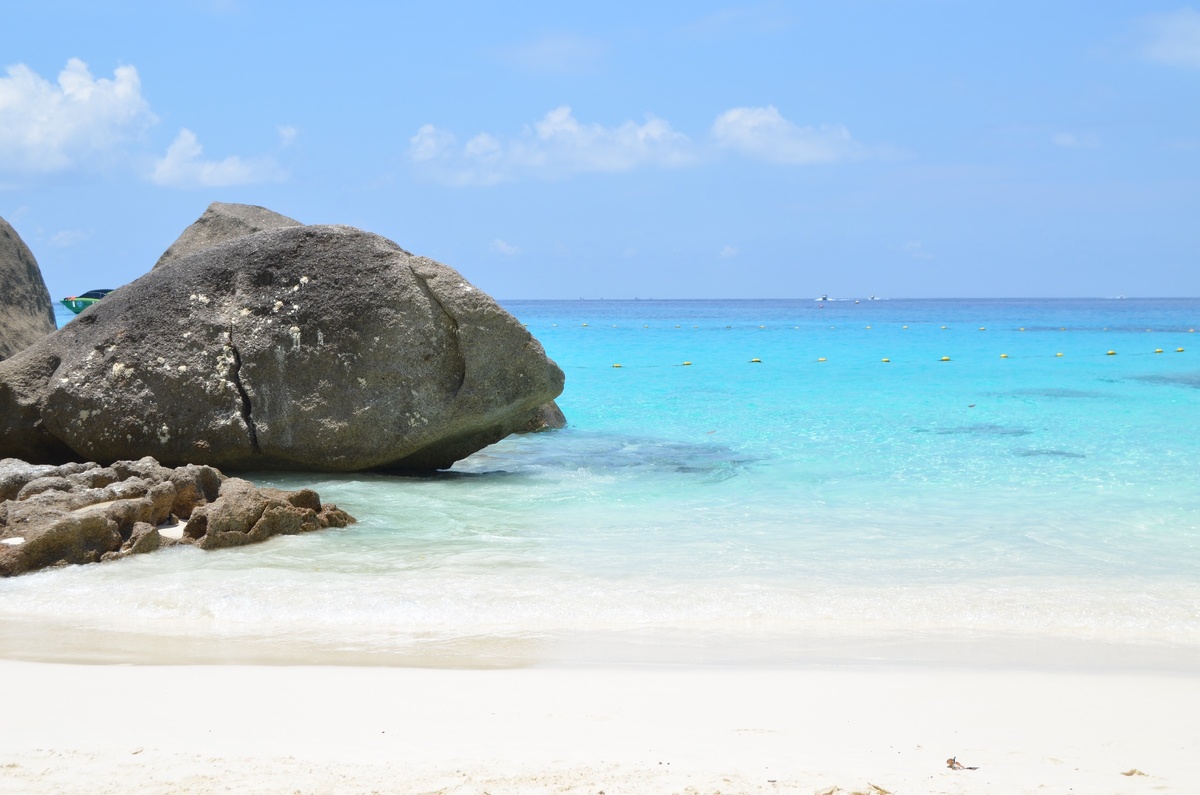 Эта статья посвящена Симиланским островам, находящихся в Андаманском море. Приобрели экскурсию на 1 день, раньше там бывали двух дневки. По плану входил ранний выезд, ехать час с небольшим на микроавтобусе до пирса. Потом минут 40 на спидботе (скоростной катер). Препати не было, мы как не выспавшиеся тушканчики загрузились на лодку пулю, и поканифолили в сторону островов. Мотор ревет, рассекаем водную гладь. В программу у нас входило две остановки для снорклинга, а так же посещение двух островов. Время в пути прошло относительно быстро, кто то спал, кто то играл в телефон, кто то считал ворон) Подошли к первому снорклингу, ласты, маски и жилеты получили и прыгнули в воду. Это было великолепно, стаи разноцветных рыб, мурена, жаль не удалось встретиться с черепахами. Минут 40 мы наслаждались великолепным подводным миром, это как перезагрузка, как будто побывали в какой-то другой реальности. Следующее место первый остров, подошли, высадились, и просто не поверили глазам что бывают такие