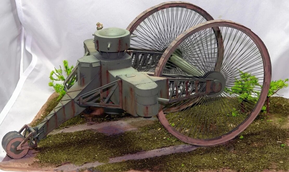 Царь-танк — боевая машина, разработанная Николаем Лебеденко в России в 1914—1915. Строго говоря, танком объект не являлся, а представлял собой колёсную боевую машину. Постройка и испытания танка проводились в 1915 году. По результатам испытаний был сделан вывод об общей непригодности танка к использованию в условиях боя, что привело к закрытию проекта. Построенный экземпляр был впоследствии разобран на металлолом. Однако данная машина представляет определенный интерес и некоторые особенности о которых поведаем в данной статье. Проект машины отличался большой оригинальностью и амбициозностью. По воспоминаниям самого Лебеденко, на идею этой машины его натолкнули среднеазиатские повозки-арбы, которые, за счет колёс большого диаметра, без проблем передвигались по пересеченной местности. Поэтому, в отличие от обычных танков, использующих для передвижения гусеничную ленту, Царь-танк был колёсной боевой машиной и по конструкции напоминал орудийный лафет. Два огромных спицевых передних колеса