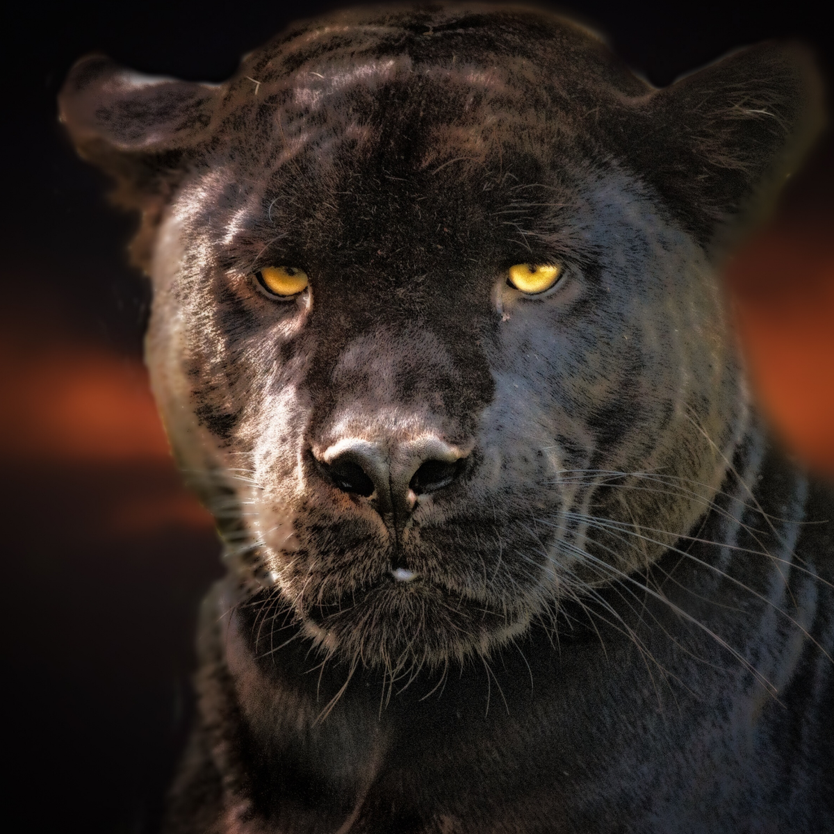 Вижу полоску ночного неба с верхушками деревьев. Вырезаны будто по трафарету. Вглядываясь в силуэты крон: на всю ширину просвета стены проявляется морда ягуара. Глаза огромные, мерцают желтоватым отсветом. Изображение занимает всю видимую часть неба.