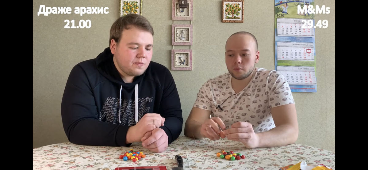 Проводим эксперимент. Александр отворачивается и рассказывает анекдот(это обязательное условие), я же мешаю конфеты одинаковых цветов.