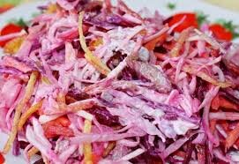 8. Все ингредиенты перекладываем в большую салатницу, присаливаем, перчим и заправляем сметаной.