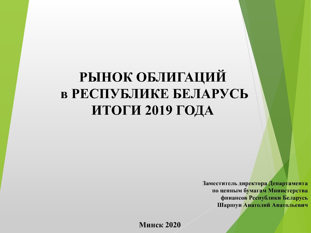 Итоги внутреннего рынка облигаций Республики Беларусь в Презентации Департамента по ценным бумагам Министерства финасов.