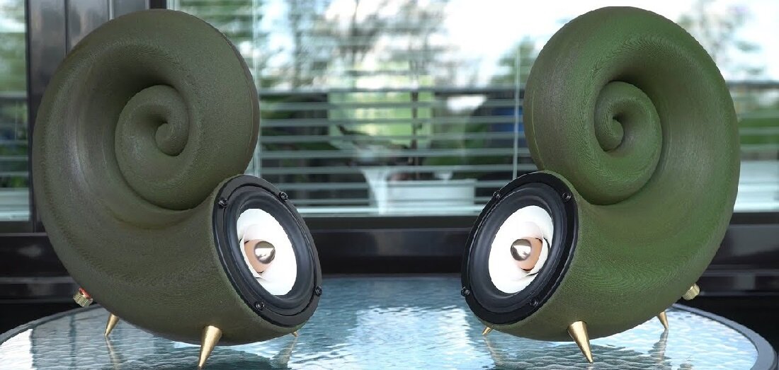 Akemake представил модель, которая создана под вдохновением от самого символичного дизайна в области высококачественного звучания. Речь, конечно же, идет о знаменитых колонках Bowers & Wilkins Nautilus. Для устранения негативных побочек, им все же нужны какие то дополнения. Именно поэтому корпус принял спиралевидную форму. В результате нежелательные резонансы существенно ослабляются, и получается куда более чистый звук. Лучшее решение – это дополнить дизайн качественным материалом. Дерево для этого подходит идеально, так как обладает наилучшими акустическими характеристиками. А для печати можно использовать Wood PLA, что также позволит добиться относительного успеха.