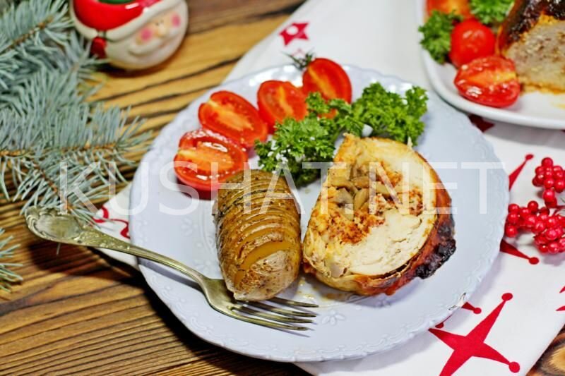 Курица, фаршированная грибами. Пошаговый рецепт с фото