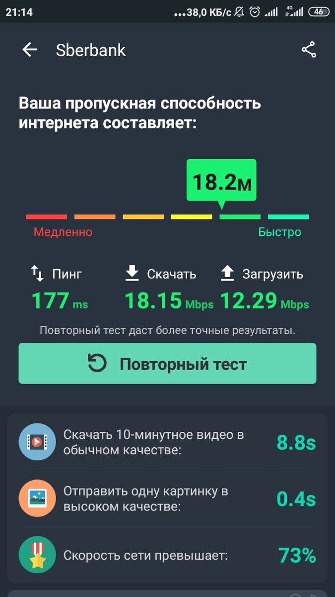 Тестирование Сбербанк mobile в Саратове и области. Если вы читали мои предыдущие посты то знаете что недавно я подключился к новому оператору мобильной связи Сбербанк мобайл. И сейчас я с вами поделюсь первыми впечатлениями и тестами которые сделал за последние две недели в Саратове и Саратовской области. И вот мои субъективные выводы. Если вкратце то это в центре города связь достаточно хорошая и интернет быстрый и голосовая связь ну SMS и прочее я говорить не буду. Поскольку редко пользуюсь. Больше всего меня интересовала скорость и загрузка интернета. поэтому я гонял на смартфоне видео и аудио книги слушал в онлайне и самое главное делал замеры в разных точках города в разное время. И в дневное и в ночное поскольку загрузка интернета в это время разное. результаты вы можете посмотреть на скриншотах самых популярных программ для тестирования интернета. Также я себе поставил программу которая тестирует сигнал сотовой связи просто показывает мощность которая получает телефон от ближа
