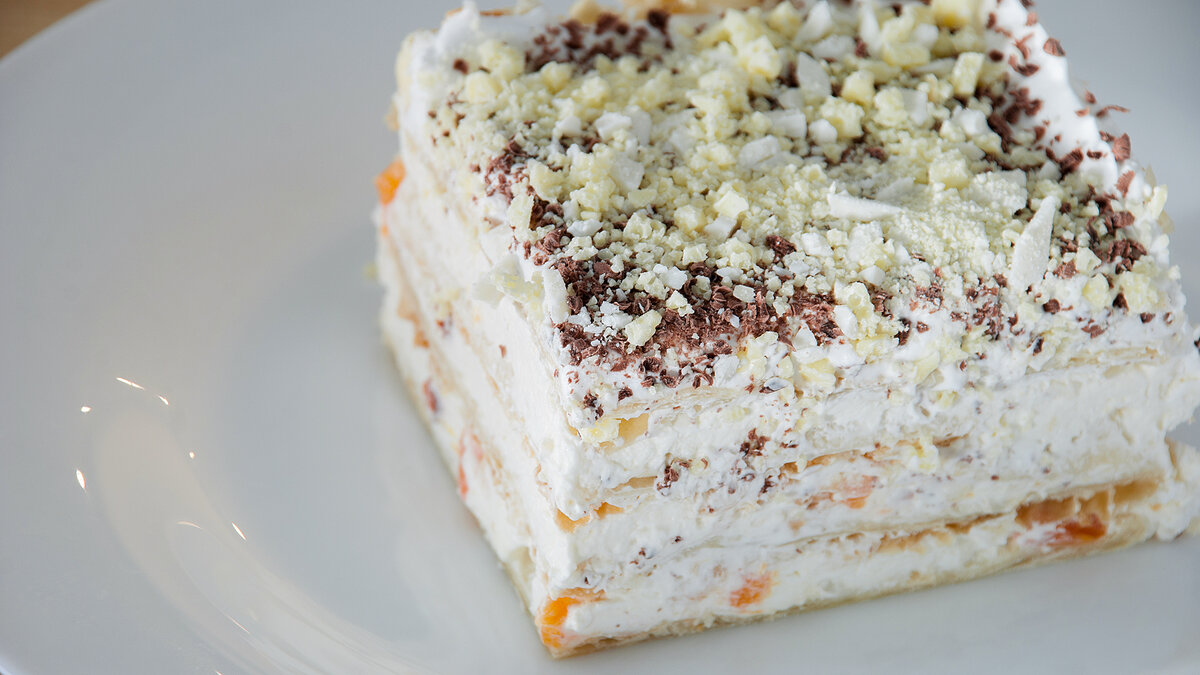 11. Украшаем торт измельченным темным и белым шоколадом. Убираем торт в холодильник на 2-3 часа