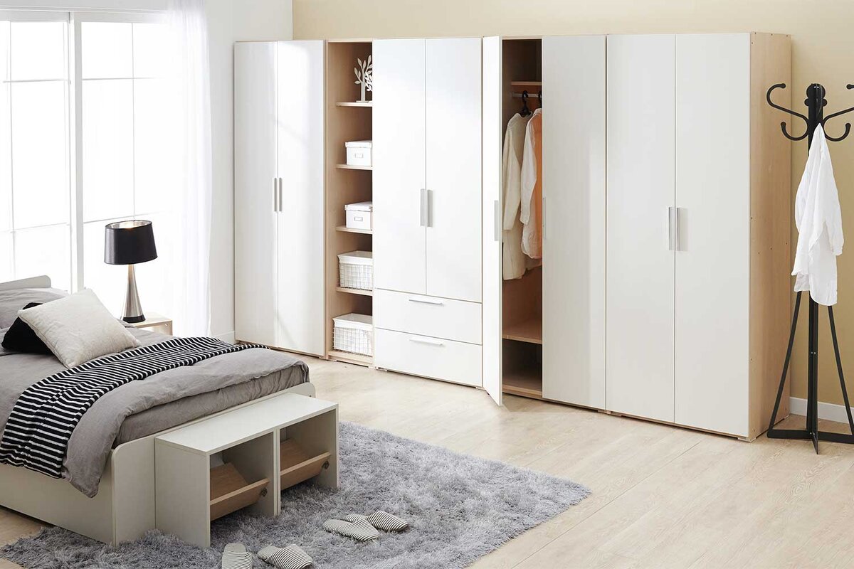 Шкафы-купе — идеальный выбор, когда хочется по максимуму использовать пространство и когда есть место в комнате. И если с фасадами разобраться довольно просто, достаточно подобрать нужный стиль и цвет к вашему интерьеру, то вот с наполнением возникают вопросы. Важно сразу распределить содержимое шкафа правильно, ведь переделывать полки и рейлинги потом проблематично. От чего зависит наполнение шкафа? Все довольно индивидуально, но можно выделить общие черты: ● от ширины, высоты и формы шкафа ● от бюджета ● от личного удобства: кто-то любит открытые полки, кому-то нужно больше рейлингов для плечиков или выдвижные ящики для хранения белья ● но главное, от количества и типа вещей, которые нужно будет хранить и соответственно от того, в какой комнате будет стоять шкаф. Так, в узкой части углового шкафа бессмысленно делать рейлинги и логичнее сделать полки для белья, а если нужно хранить постельное белье — пригодятся верхние полки над рейлингом, которые удобны для объемных одеял и подушек.