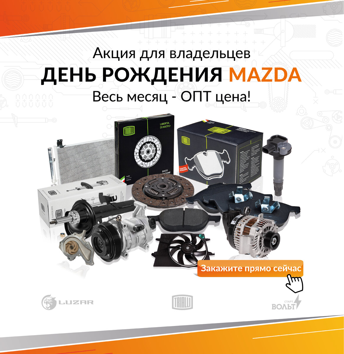 30 января - день рождения марки Mazda. В честь этого события весь следующий месяц на автозапчасти для автомобилей этой марки действует оптовая цена!