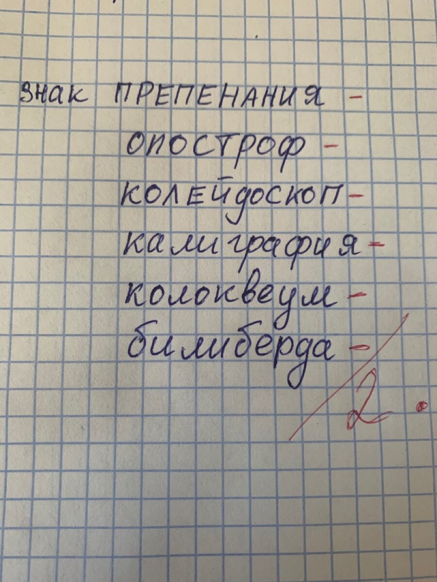 Ниже будет приведена фотография, на который написаны 6 слов с ошибками. Ваша задача написать эти слова правильно. 1. Знак препенания 2. Опостроф 3. Колейдоскоп 4. Калиграфия 5. Колоквеум 6. Билиберда Конечно, у всех абсолютно разный уровень знания русского языка, даже если это родной язык. У кого то в школе и других учебных заведениях, были прекрасные преподаватели, которые развили любовь к языку и научили писать грамотно. У кого-то была в школе оценка "5", у кого-то "3". Самое главное писать и произносить правильно, после того как мы заметили, что раньше писали не верно и узнали как верно. Как говорят: "Век живи - век учись!" Ну что? Готово? Быстрее в комментарии искать правильные ответы! Оставляйте комментарии о том, сколько слов вы написали верно! Рекомендуем к прочтению: Тест на проверку словарного запаса Тест на эрудицию Тест на знание авторов русской литературы