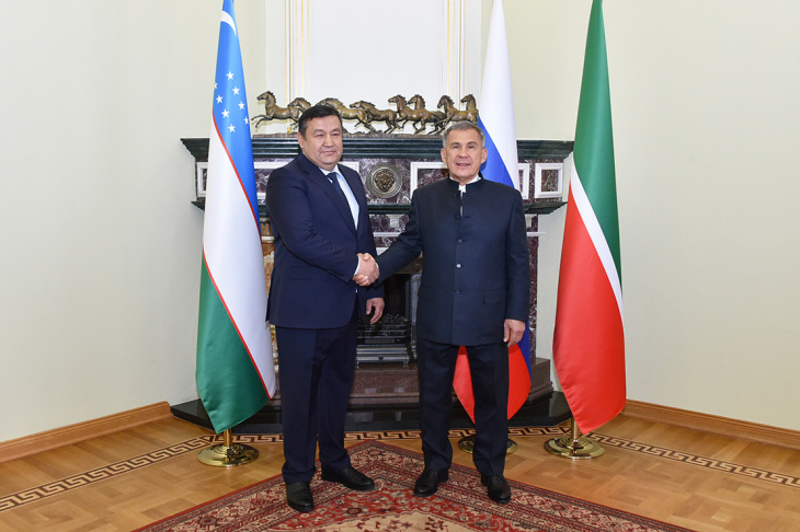 Узбекистан, Ташкент - АН Podrobno.uz. Президент Татарстана Рустам Минниханов в ходе переговоров с хокимом Бухарской области Уктамом Барноевым предложил открыть прямой рейс между Казанью и Бухарой, сообщает корреспондент Podrobno.uz. В рамках встречи обсуждались вопросы развития взаимодействия между предприятиями Татарстана и Бухарской области, увеличение объемов и номенклатуры взаимных поставок товаров и услуг, укрепление гуманитарных связей. По словам Минниханова, у Татарстана и Узбекистана есть большой потенциал для развития торгово-экономического сотрудничества. Он также заметил, что благодаря активной работе товарооборот Татарстана и Узбекистана в 2018 году вырос более чем на 50% и составил 146 миллионов долларов. По итогам прошлого года объём взаимной торговли достиг 195 миллионов долларов. "Я считаю, что наши возможности позволяют достичь ещё больших результатов. Следует продолжить активную работу по всем направлениям", – подчеркнул он. Большая работа, по словам президента Тата