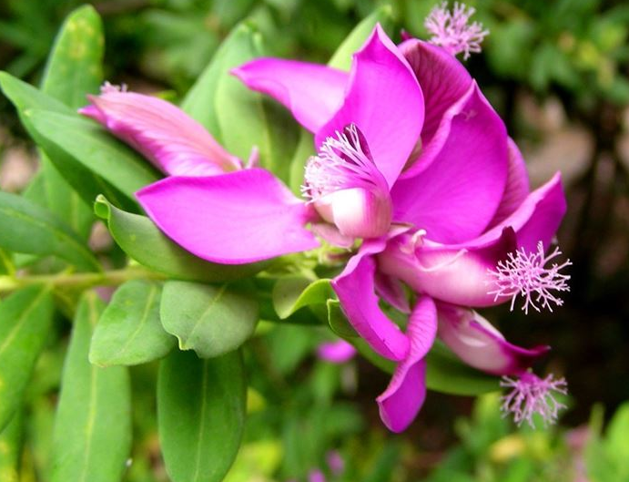 Десятки видов многолетних травянистых растений относятся к роду polygala, широко распространенному на территории теплых стран в дикой природе. В питомниках легче найти Polygala myrtifolia, также называемую polygala с листьями мирта, гибридный вид, полученный скрещиванием двух видов, происходящих из южной части Африки. Куст имеет округлую форму и очень плотные ветви. Ствол часто множественный, покрыт сероватой корой. Листья вечнозеленые, ланцетные, довольно кожистые, серо-зеленого цвета. По форме напоминает листву мирта, хотя и имеет большие размеры. С весны до осени Polygala myrtifolia производит бесчисленные розово-лиловые цветки, часто собранные на вершине стеблей. По форме они напоминают цветы бобовых. Взрослые кусты могут достигать 150-280 см в высоту. Существуют также карликовые сорта с очень компактной привычкой, высота которых не превышает 35-50 см, и сорта с белыми цветами. Что касается воздействия, то желательно посадить Polygala myrtifolia в солнечном или частично затененн