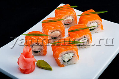 Роллы – это классическое японское блюдо, которое подают как на обед, так и на ужин. Обычно, для их приготовления используют настоящие сушеные водоросли нории, но их изюминка не в этом: повар должен обладать мастерством такого уровня, чтобы приготовить ролл с рисом наружу, ведь Филадельфия готовится не по такому рецепту, как классические суши-маки. Популярность роллов Филадельфия объяснить очень легко. А весь секрет в оригинальном сочетании нежного лосося и сыра Филадельфия со сливочным вкусом, благодаря которому получается очень вкусное, изысканное блюдо. Иногда в них добавляют ломтики авокадо, которое, из-за маслянистой консистенции, только обогащает вкусовую палитру блюда. В летнее время в роллы для придания свежих ноток добавляют тонко порезанный огурец. Новичкам придется предварительно потренироваться, прежде чем научиться готовить такие «роллы наизнанку». Первые трудности могут появиться не только при использовании риса, но и при измельчении сыра, ведь Филадельфия обладает очень