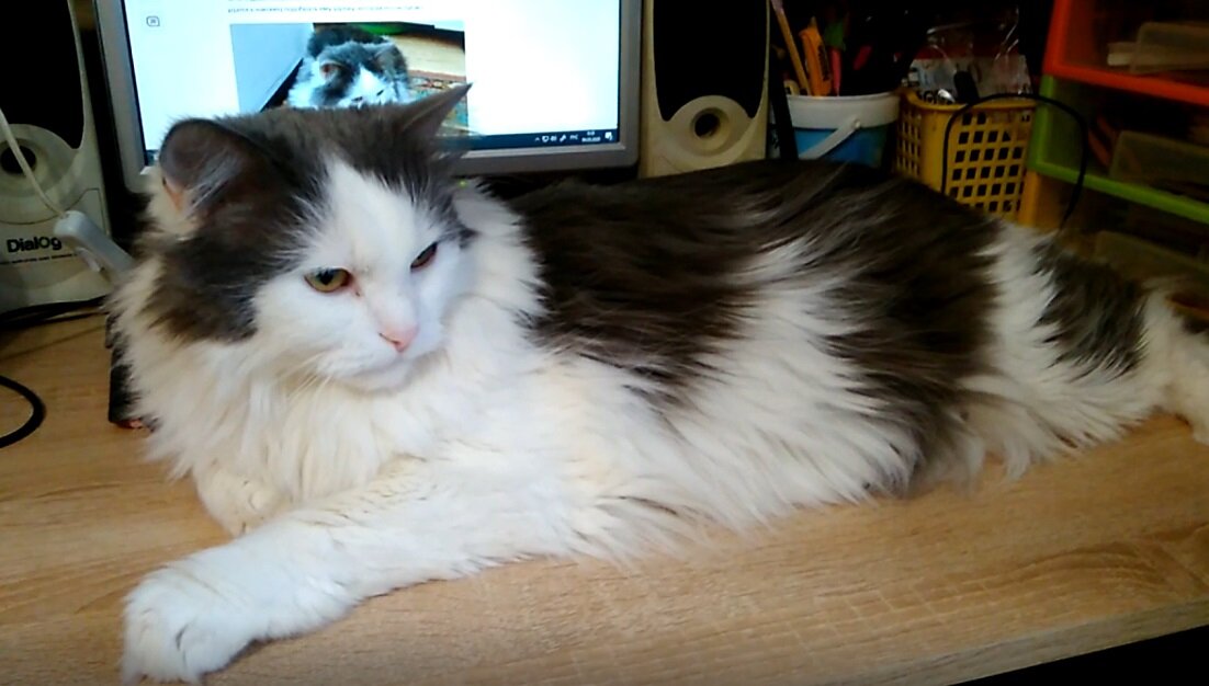 Придумал наш Мартин последнее время на столах лежать. Все последние восемь лет он вообще не помышлял на столы забираться а сейчас только и успеваю его со столов уйти уговаривать. Журнальный столик он уже приХватизировал себе, но я и не сильно возражаю против этого. Слава богу пока до обеденного стола не добрался, но скорее всего и не дойдет до этого. Обеденный стол его вообще не интересует как поверхность пригодная для лежания. Стол у нас небольшой и все время чем-то заставлен, коту там не разместиться при всем его желании. Да и при любой попытке заинтересоваться обеденным столом жестко применяется фраза, работающая как выстрел: "Это что это такое?!". Желающих покорить новое пространство сдувает словно ветром. Ни Соня ни Мартин с детского возраста не проявляют интереса с кухонным поверхностям, может быть было пару раз нарушение с их стороны этого запрета, но это было давно, когда они были котятами, и одного раза оказалось достаточно для того, чтобы они раз и навсегда запомнили это. В